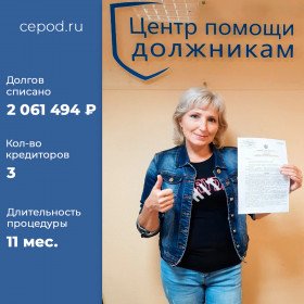 Списано долгов на 800 000 р. за 11 месяцев. Кол-во кредиторов - 4 шт.